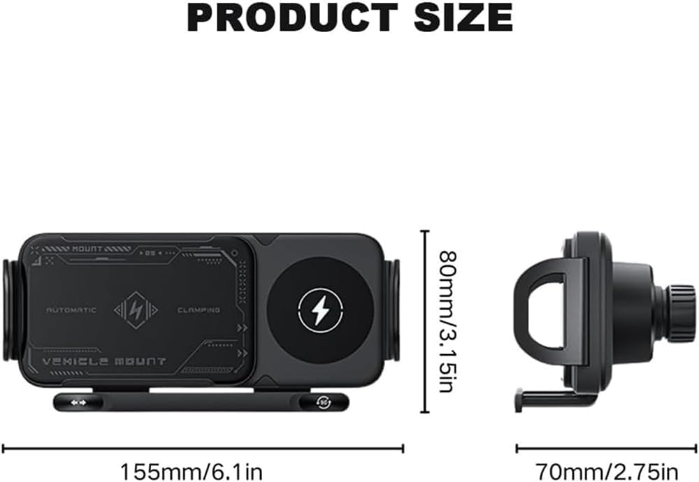 ⚡ 15W FAST WIRELESS CHARGING: Equipped with dual-coil technology, the holder offers 15W fast charging for devices larger than 5.9 inches, ensuring your phone stays powered up while on the road.