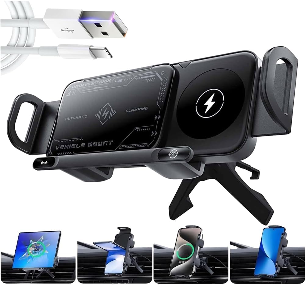 📱 2 IN 1 HIGH-INTELLIGENT HOLDER: This multifunctional device serves as both a phone/tablet holder and a fast wireless charger. The auto-rotating function allows seamless switching between portrait and landscape mode.